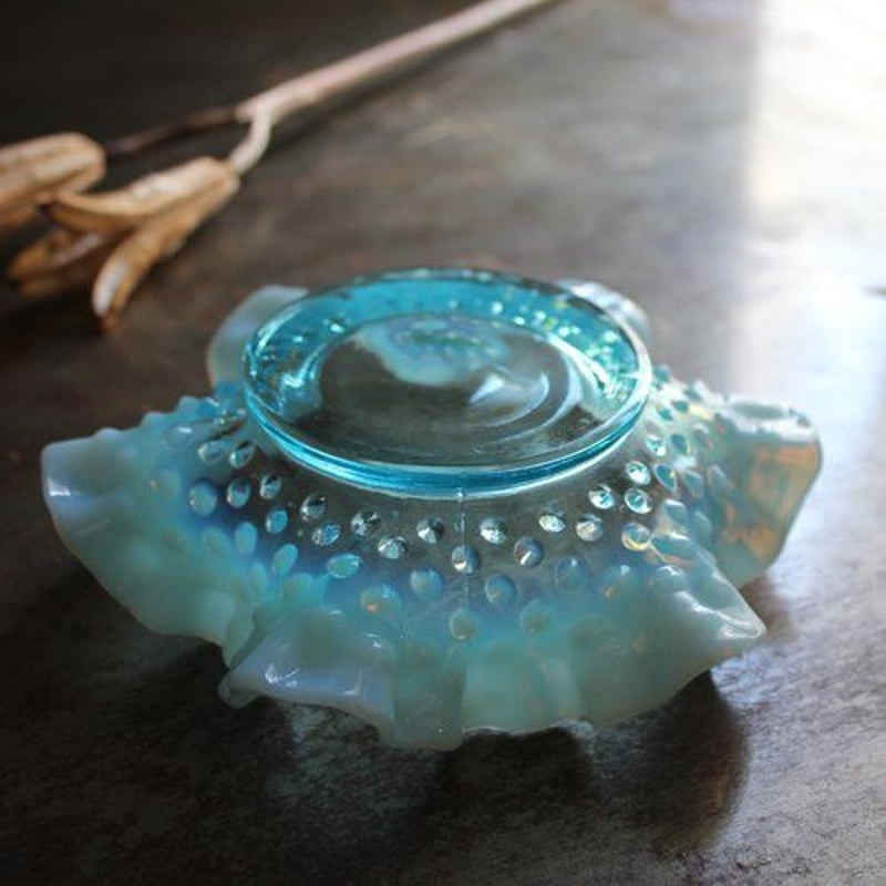 - 美術品・アンティーク・コレクション > 工芸品 > フェントン ブルーオパルセント ダイヤモンドレース ディッシュ 大皿 フェントン ブルーオパルセント ダイヤモンドレース ディッシュ 大皿