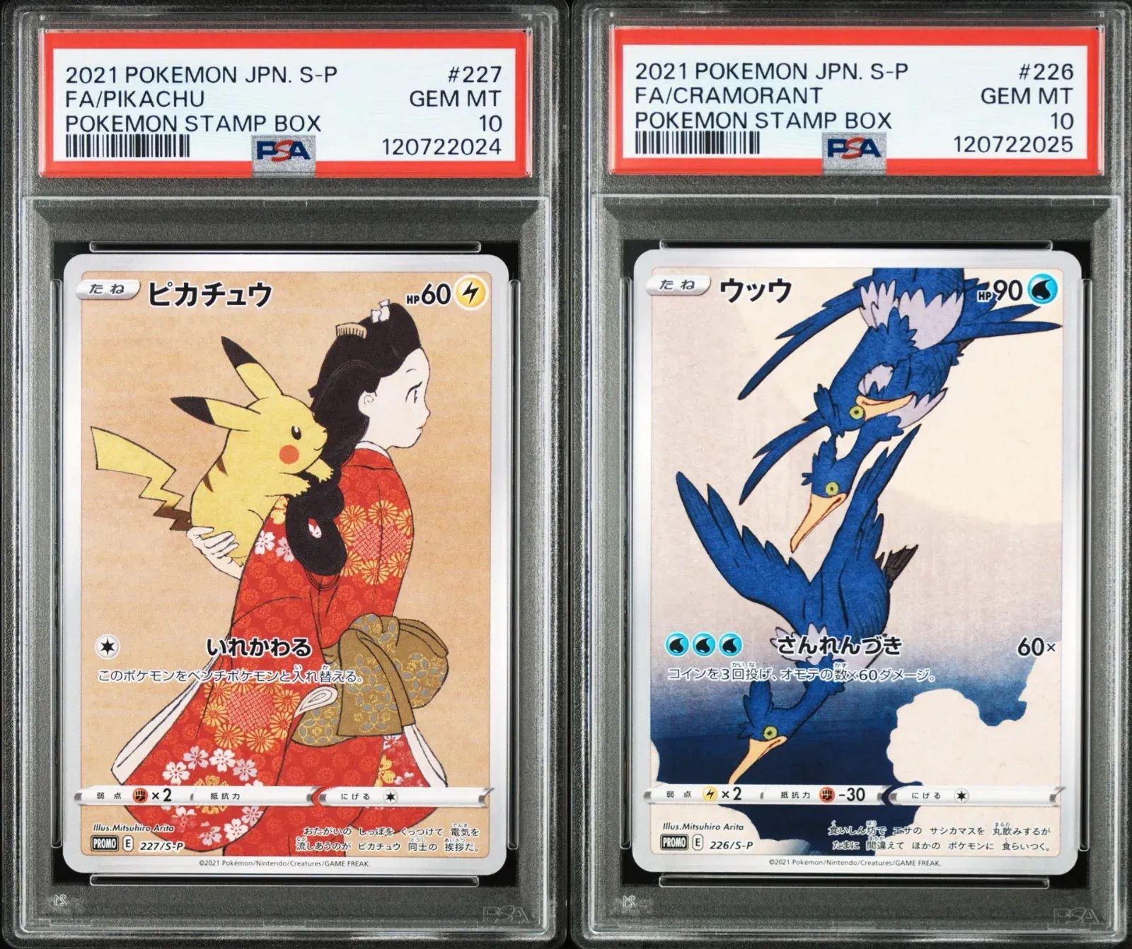 | 商品の特徴 | 見返り美人ピカチュウウッウ PSA 9。見返り美人ピカチュウウッウ PSA 9。見返り美人ピカチュウウッウ PSA 9。見返り美人ピカチュウウッウ PSA 9。切手セットに入っていた見返り美人のピカチュウ ウッウ psa9 2枚セットカードの状態は画像参照願いますPSA専用ケースに入れて発送させて頂きます | ||