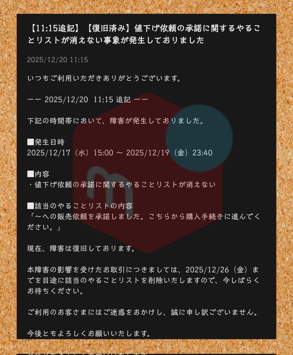 - キャラクターグッズ > ピンズ・ピンバッジ・缶バッジ > 近日中に売り切りたいため値下げ可能様用 メルカリ 2025/12/20 11:15【復旧済み】 值下げ依頼の承諾に関するやる
