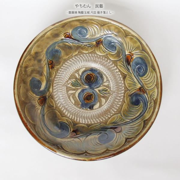 - 美術品・アンティーク・コレクション > 工芸品 > 民藝 沖縄 琉球 壺屋焼 やちむん 尺皿 飾り皿 大皿 飴釉 線彫り 掻き落とし 民藝 沖縄 琉球 壺屋焼 やちむん 尺皿 飾り皿 大皿 飴釉 線彫り 掻き