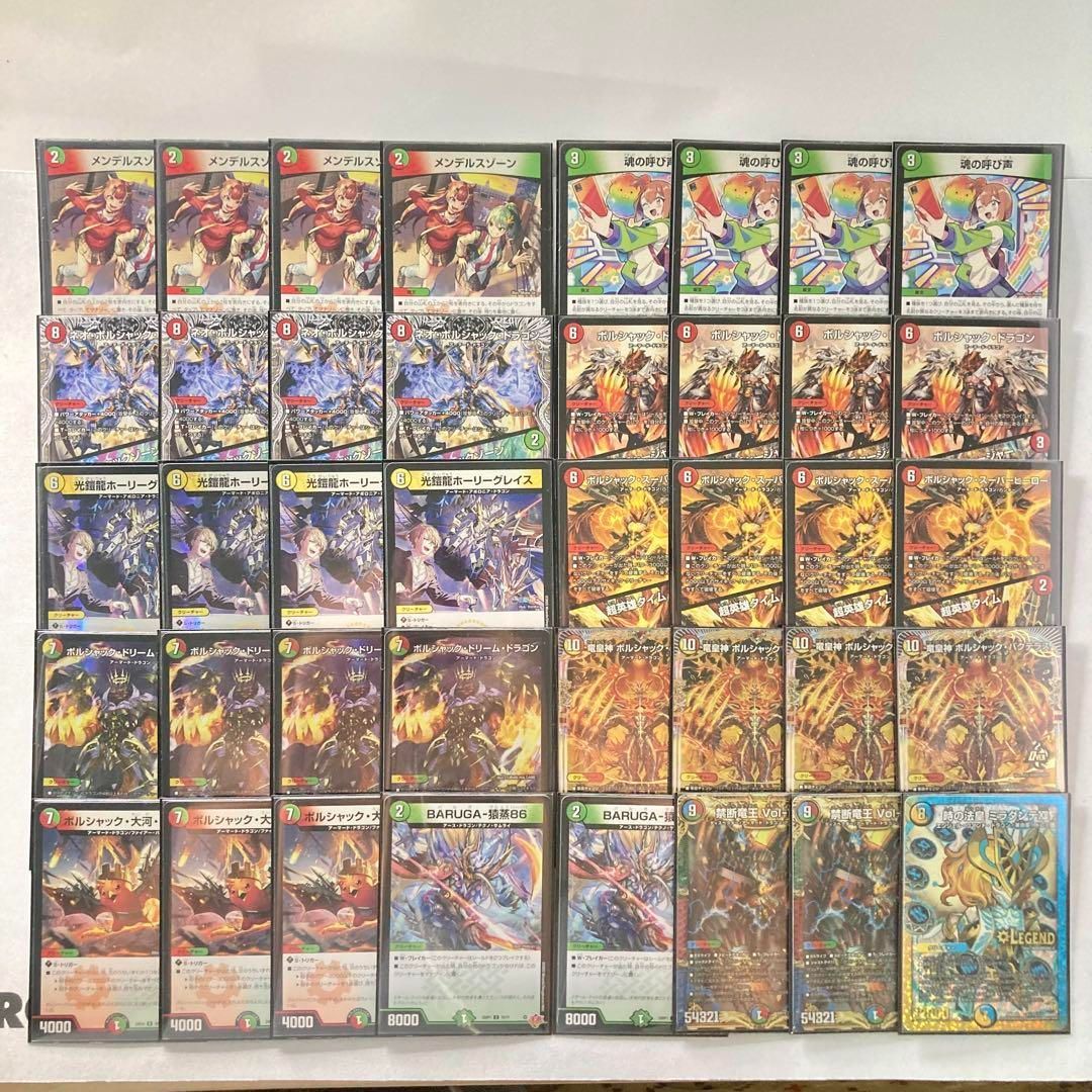 | 商品の特徴 | 本格構築【呼び声ボルシャック】デッキ&2重スリーブ - メルカリ。本格構築【呼び声ボルシャック】デッキ&2重スリーブ - メルカリ。本格構築【呼び声ボルシャック】デッキ&2重スリーブ 本格構築。本格構築の呼び声ボルシャックデッキ◆環境クラスのスペック構築 ボルシャックドリームとバクテラスによる相互踏み倒し&大火力でボルシャックデッキを使い倒す ミラダンテや魂の呼び声など必須や相性の良いパーツを採用☆インナースリーブにオーバースリーブの即実戦2重スリーブセット★あなたのデッキカスタマイズサービス・デッキパーツの追加変更・スリーブの追加変更・レアリティの変更・その他なんでもご希望に応じたデッキのカスタマイズを相談してください。支配の精霊ペルフェクト ヘブンズゲートホイル アケルナル各4枚 青白リゼ天門。本格構築 【赤緑王闘ボルシャック】 デッキ&二重スリーブ 《 王来英雄。ご相談はコメント欄よりお願いいたします。↓↓↓その他デッキはこちら#かしこまデュエマデッキ#かしこまデュエマボルシャックデッキ#かしこまデュエマ環境デッキ■メインデッキ4枚《メンデルスゾーン》4枚《魂の呼び声》4枚《ネオ・ボルシャック・ドラゴン/ボルシャックゾーン》4枚《ボルシャック・ドラゴン/決闘者・チャージャー》4枚《光鎧龍ホーリーグレイス》4枚《ボルシャック・スーパーヒーロー / 超英雄タイム》4枚《ボルシャック・ドリーム・ドラゴン》4枚《竜皇神 ボルシャック・バクテラス》3枚《ボルシャック・大河・ルピア》2枚《BARUGA-猿蒸86》2枚《禁断竜王 Vol-Val-8》1枚《時の法皇 ミラダンテⅫ》 | ||