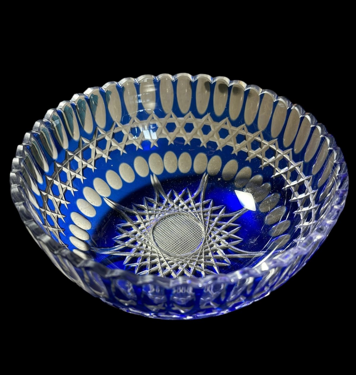 - 美術品・アンティーク・コレクション > 工芸品 > 骨董 時代ガラス 希少 群青色被せ モダンカット 大正浪漫切子 兜型 向付 小鉢 骨董 時代ガラス 希少 群青色被せ モダンカット 大正浪漫切子 兜型 向