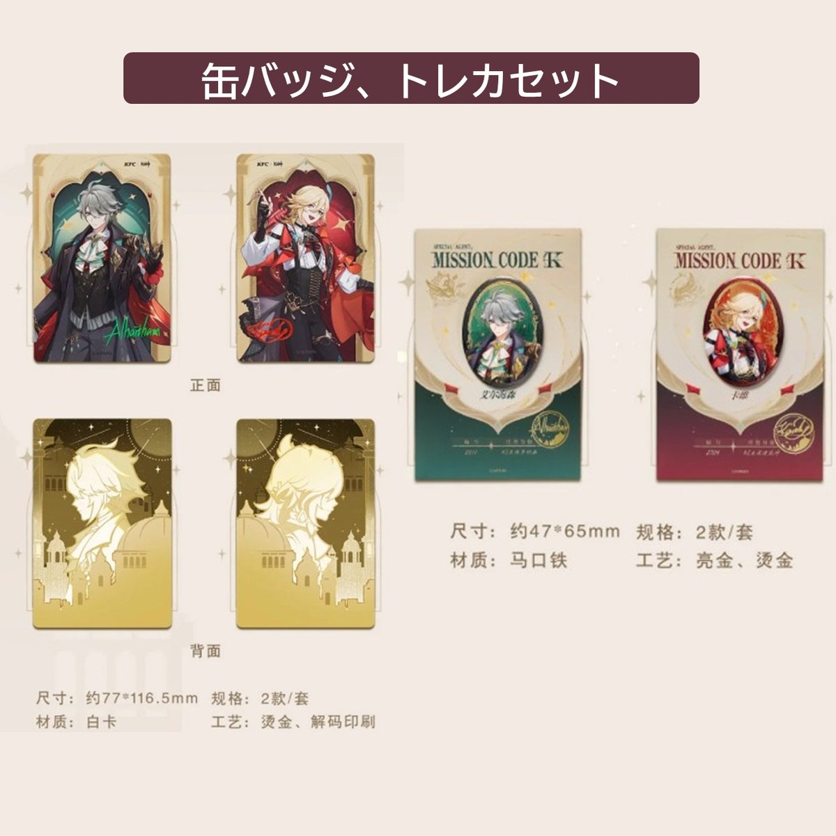 | メーカー | 【原神】アルハイゼン 缶バッジ ケンタッキーコラボ まとめ売り 原神】アルハイゼン |
